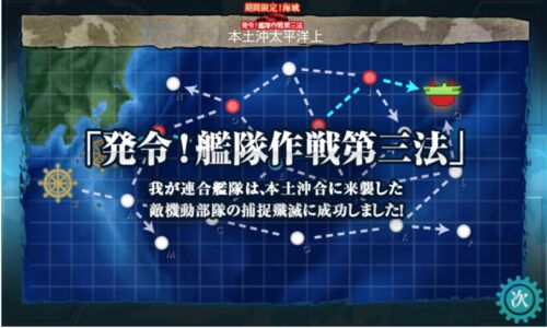 E3はかなり強敵でした。途中までは甲で頑張りましたが、最終的に丙でクリアすることが出来ました。何というか、資材は十分あったのですが、迫り来るタイムリミットと相次ぐ道中大破で心が折れ、ゲームとして愉しむために丙にした感じです。丙にしたとたん支…